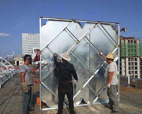 山西徳軒文化傳媒有限公司施工隊(duì)在山西晉中醫(yī)院施工安裝樓頂大字的效果圖如下:
