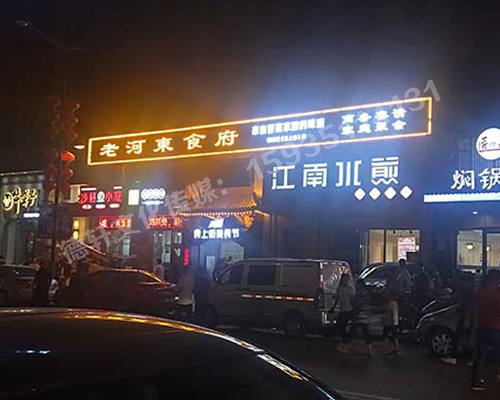名稱:老河?xùn)|食府-服裝城門頭發(fā)光字、沖孔字